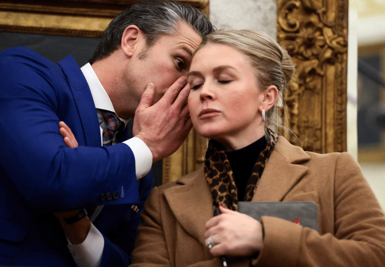 Defense Secretary Pete Hegseth Confers With Press Secretary Karoline Leavitt During Oval Office Medal Ceremony