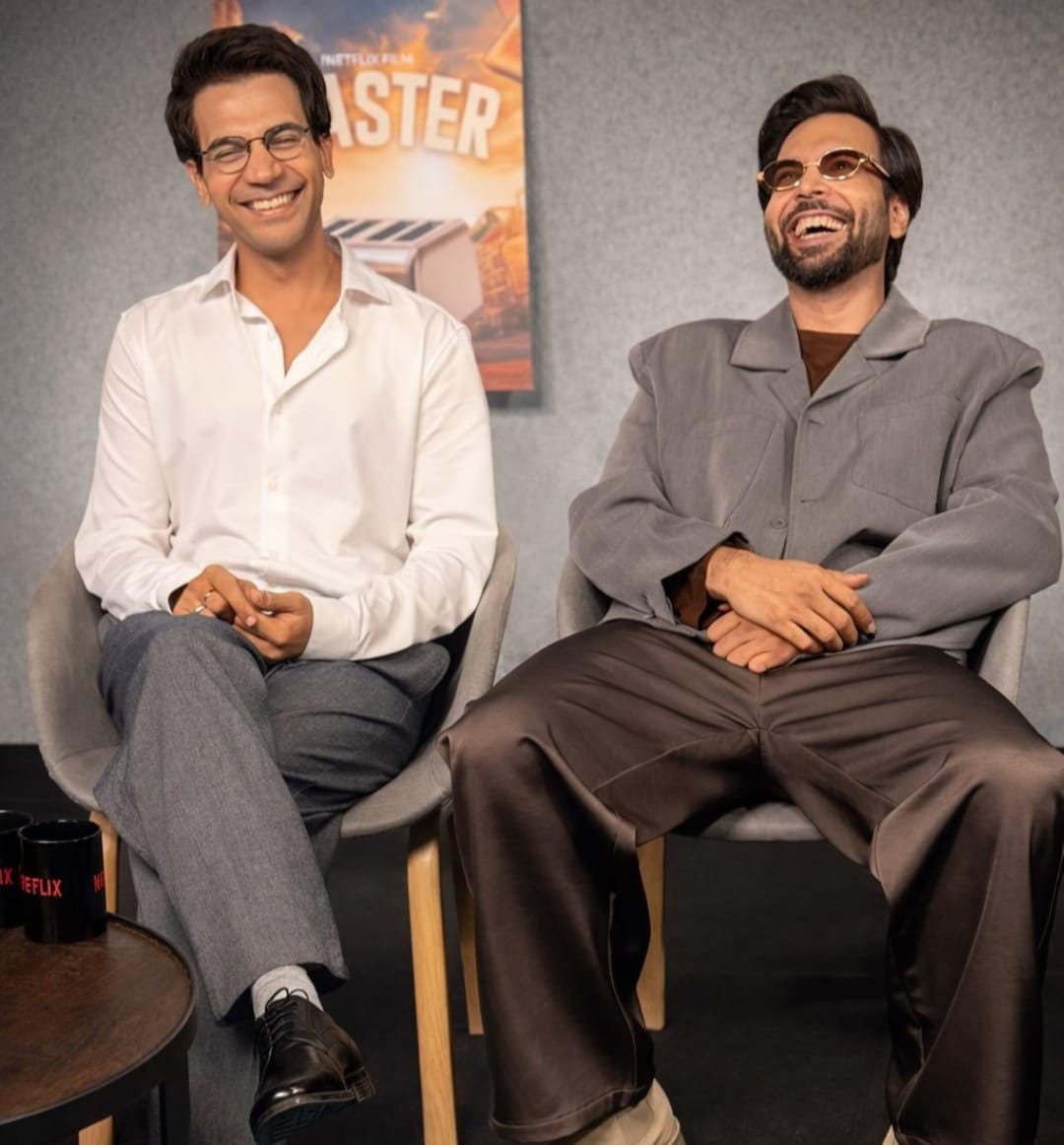 Abhishek took to Instagram, where he shared a picture with Rajkummar, where the two are seen sitting together and laughing.