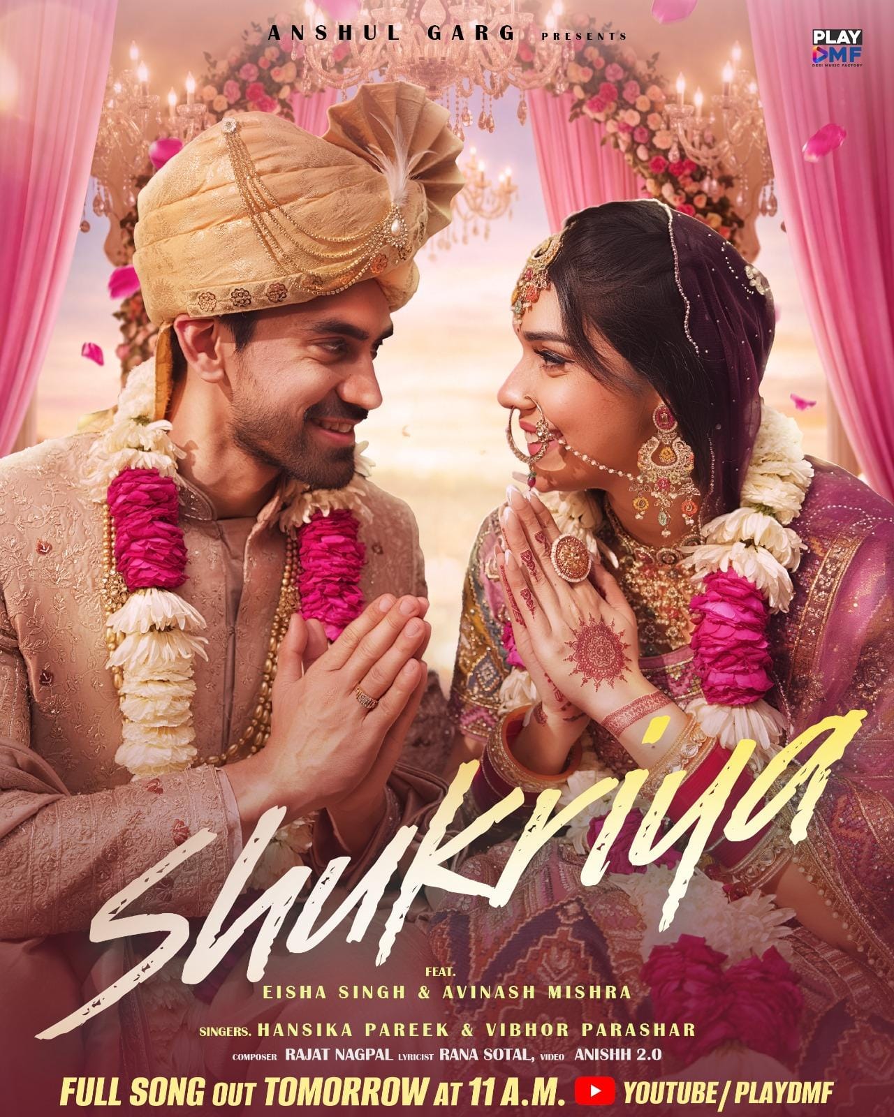 Sharing "Shukriya" on social media, the makers wrote, "Update your Wedding Playlist with #Shukriya... Song Out Now only on @playdmfofficial Youtube channel."
