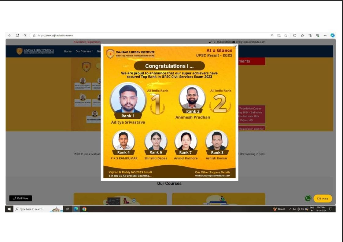 In an order passed on February 20, the CCPA, headed by Chief Commissioner Nidhi Khare and Commissioner Anupam Mishra, found that the institute’s promotional claims — including "Over 645 selections out of 1,016 vacancies in UPSC CSE 2023", "6 in Top 10 AIR", "35 in Top 50 AIR", and "64 in Top 100 AIR" — created a false impression among aspirants about the nature of services offered.