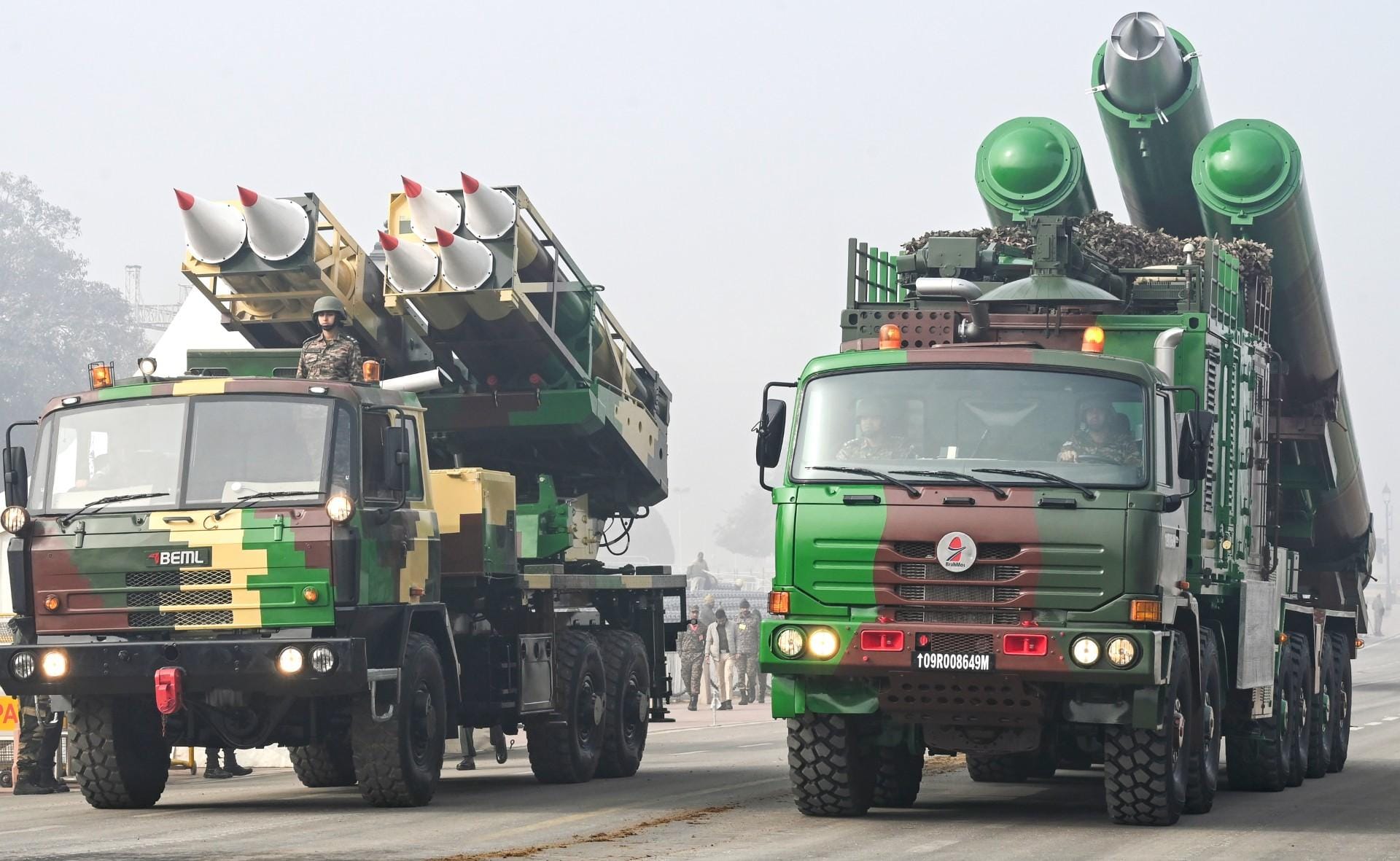 "HMRV (High Mobility Recce Veh -- BFSR and ATGM) and Dhruv Heptr, T-90, Main Battle Tank Arjun, BMP-II and NAMIS-II Nag Missile System, IOC (Integrated Operational Centre), UGVs, ATV (All Terrain Veh), LSV (Light Strike Veh) with Trailer (Robotic Mules and UGV), Shaktiban, ATAGS and Dhanush, URLS and Brahmos, Akash and MRSAM, Drone Shakti and Glacier ATV will be the main attractions in the mechanised columns," the Ministry of Defence added.