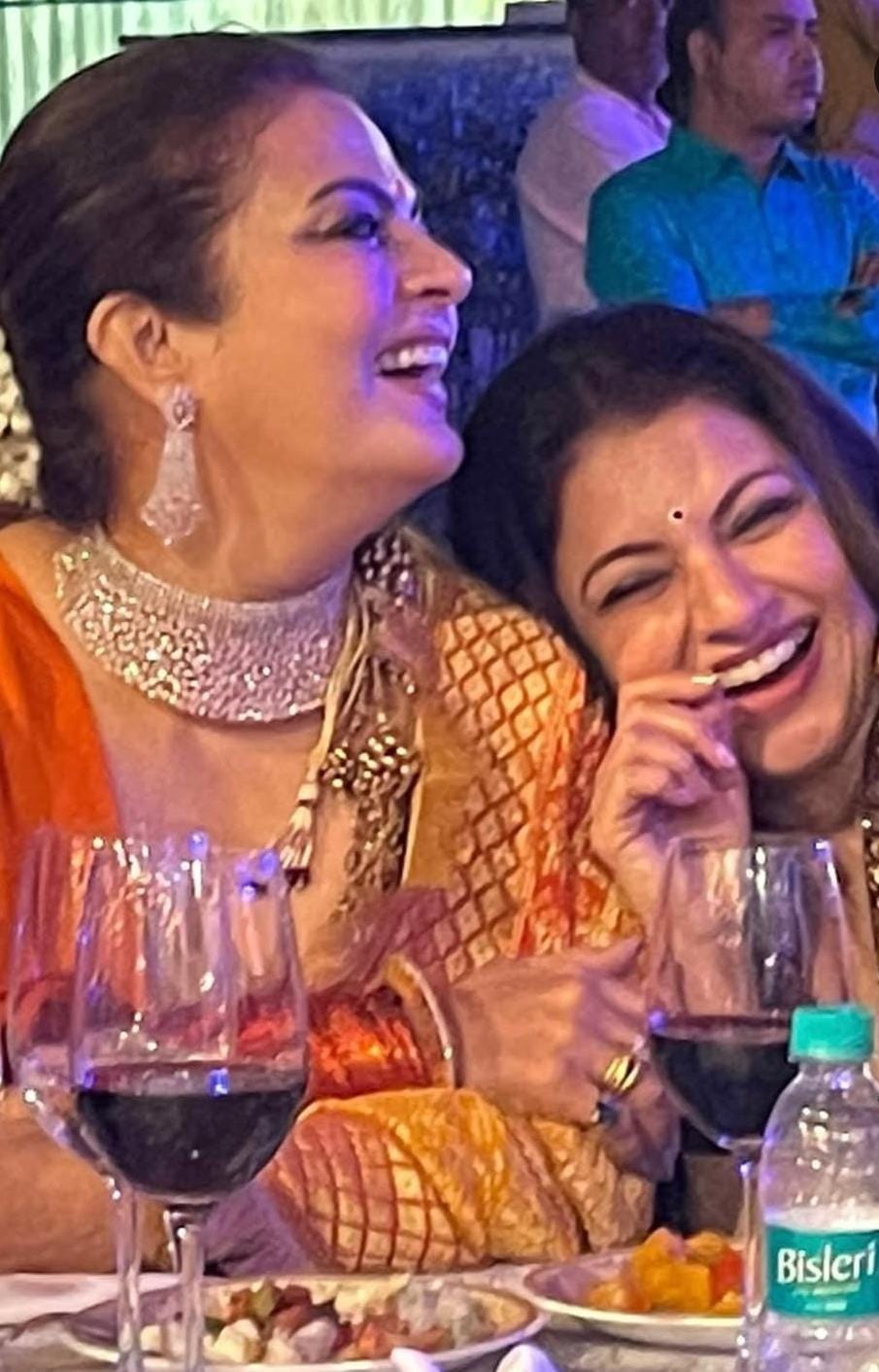 Another candid click shows them at a formal gathering, leaning onto each other as they are seen laughing over a joke.