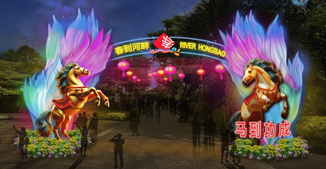 The anniversary will also feature special lantern installations. The Welcome Arch at The Meadow, shaped like the number 40 and decorated with floral designs representing spring and new beginnings, greets visitors as they enter. Another installation, Galloping into the Year of the Horse, draws inspiration from the Mandarin expression wan ma ben teng (thousands of horses galloping), symbolizing prosperity and success, with a backdrop of HDB flats designed as a scroll to blend tradition with modern life.