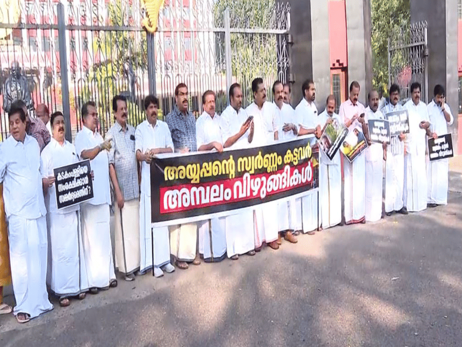 Congress-led UDF Opposition MLAs in Kerala held a protest outside the State Legislative Assembly on Thursday over the alleged theft of gold from the Sabarimala Ayyappa Temple. The case involves claims of gold being stolen from the Dwarapalaka idol plates and missing gold from the Sreekovil doorframes. The Opposition has been persistently targeting the CPI(M)-led LDF government, alleging the involvement of CPI(M) leaders in the case.